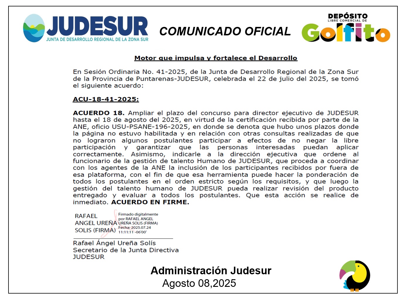 Concurso 001-2025 Director Ejecutivo de JUDESUR